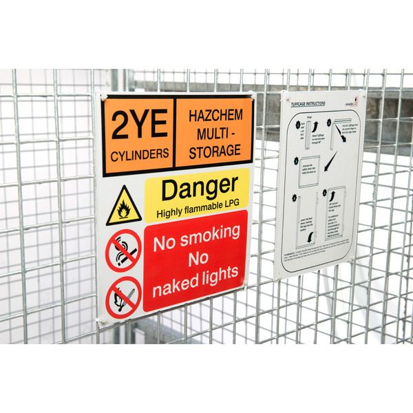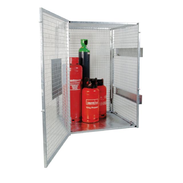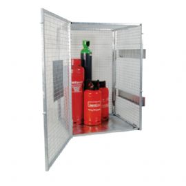 A robust versatile security cage designed for safely storing gas cylinders. One-piece unit that is easily erected in minutes and no removable parts. Folds down to 180mm high when not in use. Galvanised to sustain all weather conditions. Two padlock points for increased security.