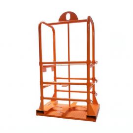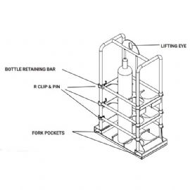 A safe method of transporting gas bottles on site, with lifting lug and top mounted fork channels for using either fork lifts or crane.