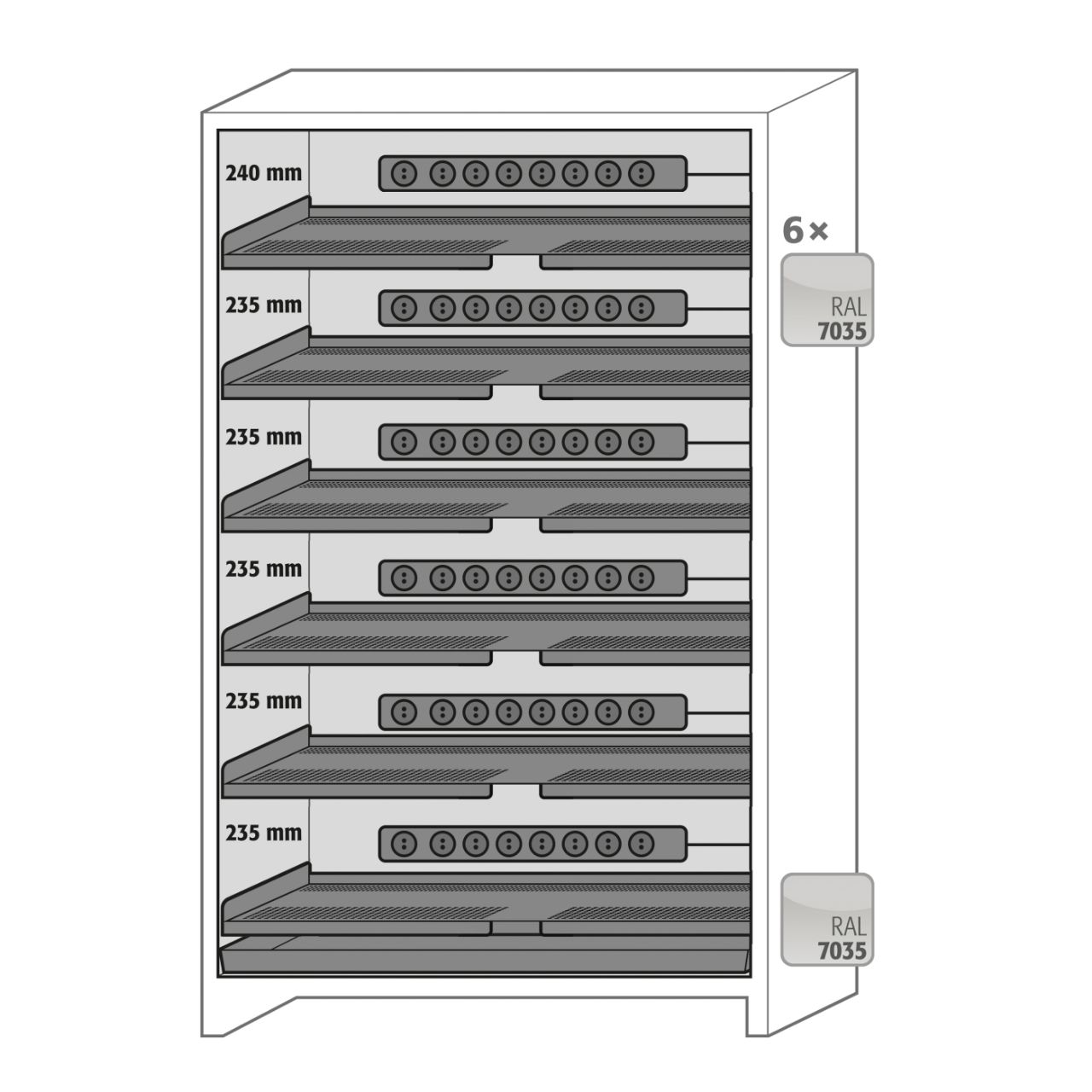 • The insulated shelves are propagation tested for safety at every storage level. In the event of a battery fire, spread to other batteries is prevented