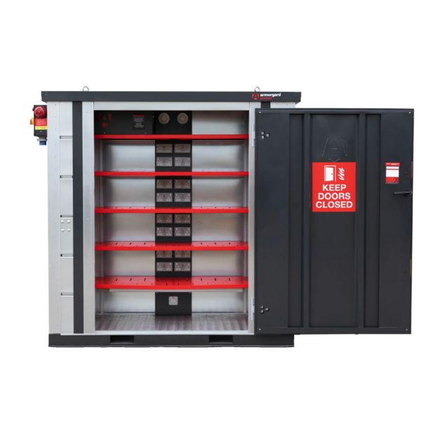 A professional range of Lithium-ion battery charging cabinets designed for safe, compliant storage and charging, offering robust fire protection and secure containment for modern workplaces.