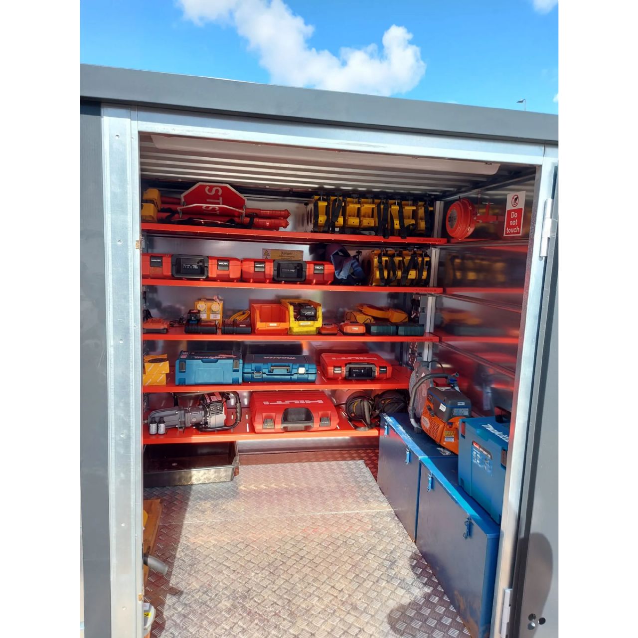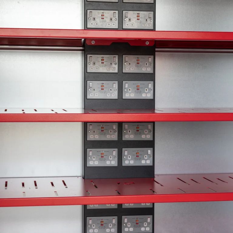 Designed with security at its core, the PWR1 is built from heavy-duty folded sheet steel and features twin 5-lever deadlocks to prevent unauthorised access. Inside, it offers 32 individual sockets across 5 fixed shelves, making it ideal for charging multiple tools and equipment in a controlled environment. It runs on a single 32A / 230V supply and arrives pre-assembled for fast, hassle-free setup.