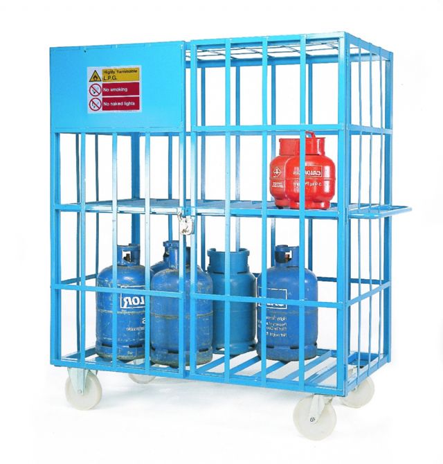 Strong and sturdy Mobile Gas Cylinder Storage Cage with padlockable hinged doors (free padlock included). Doors open through 180º. Manufactured from Heavy Duty box and angle section. Supplied with Health & Safety signage.